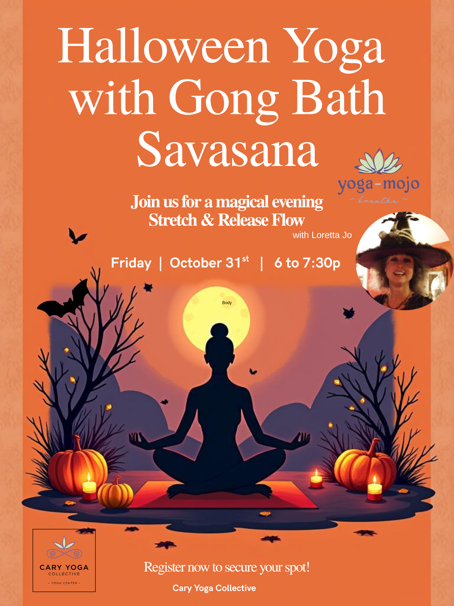 Special – Halloween Yoga-Mojo Stretch & Release practice with Gong Bath Savasana