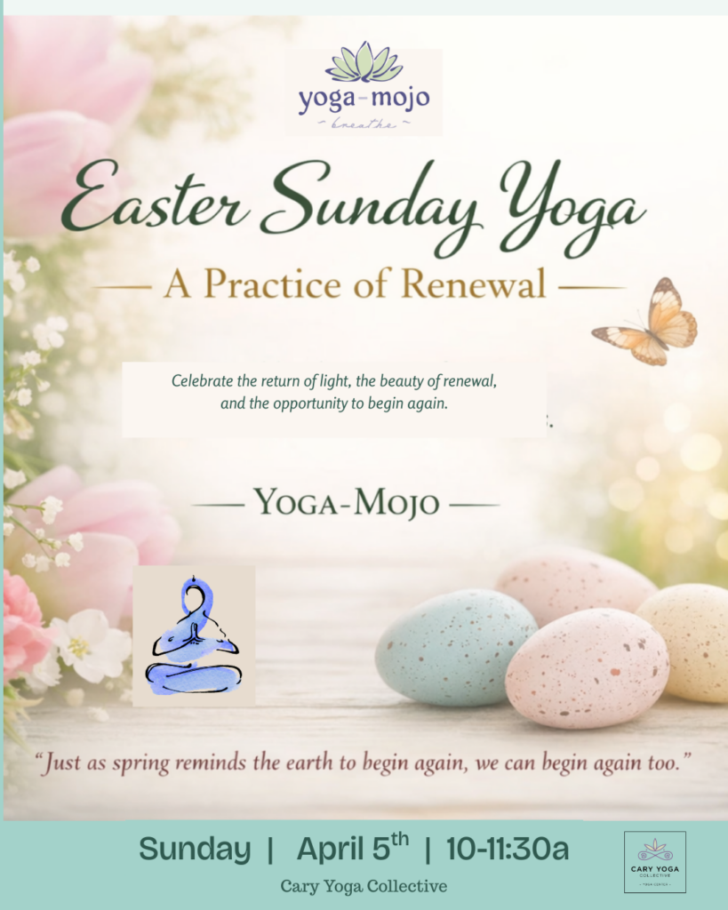 Celebrate the energy of spring with a special Yoga-Mojo Easter Sunday yoga practice focused on renewal, transformation, and new beginnings. Inspired by the ancient spring goddess Eostre and the symbolism of eggs, butterflies, and emerging life, this class invites reflection on the possibilities unfolding within us.